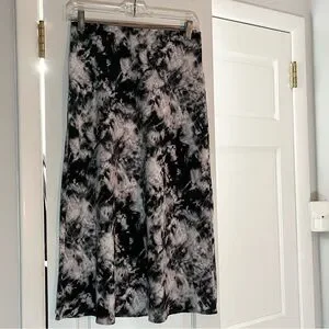 Sanctuary Black, White & Pink Tie Dye Patterned Midi Casual Spring Skirt