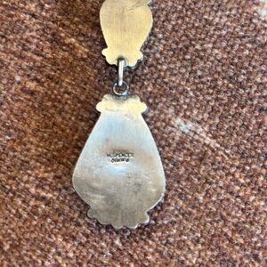 This stunning necklace features black Jack turquoise stones set in a lariet necklace comes with the matching earrings