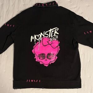 NWOT Monster High lightweight denim jacket in mint condition! Super soft black denim. Gunmetal buttons with skull accent. Pink stitching detail. Frayed edges. Unique, fun and top quality! Pairs great with Monster High knit vest also available in my closet!