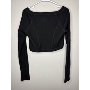 Out From Under Ribbed Cropped Cardigan Top Black Long Sleeve Size L/G