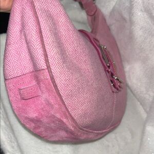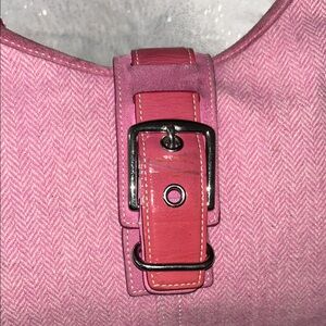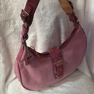 Coach RARE Vintage Suede Leather Canvas Pink Shoulder Bag with Buckle flap