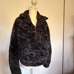 Cozy charcoal teddy jacket. Soft texture. Ideal for cool weather.