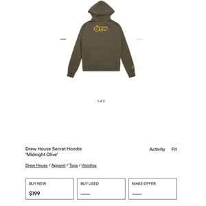 Drew House Secret Hoodie Unisex Men’s Size Medium in Midnight Olive