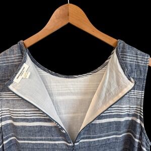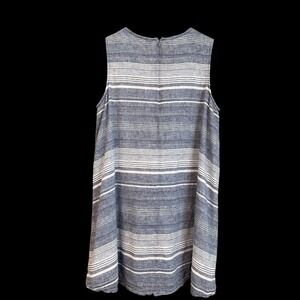 Embrace breezy comfort with this chic beachlunchlounge Collection dress. The classic blue and white stripes offer timeless appeal, while the sleeveless design and blend of linen and cotton promise airy lightness for warm days. Effortlessly transition from a casual brunch to a seaside stroll.