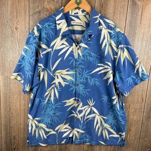 Tommy Bahama Silk Hawaiian Shirt Blue Bamboo Print Men Size XL