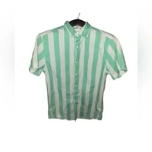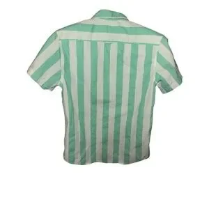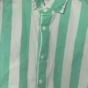 Mint and white stripes. Casual button-down style. Perfect for everyday wear.