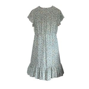 Whispers of summer meadows abound in this darling floral midi dress. A cascade of dainty blossoms dances across a breezy silhouette, punctuated by a button-front design that invites personalized styling, and a flattering drawstring waist that gently defines your figure. The charming ruffle hem adds a touch of playful elegance. Perfect for a sun-drenched picnic, a casual brunch with friends, or a romantic stroll through a garden, this dress embodies effortless chic.