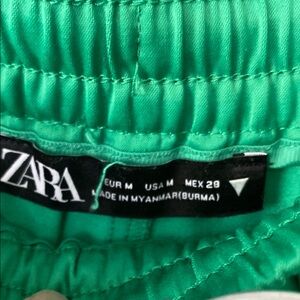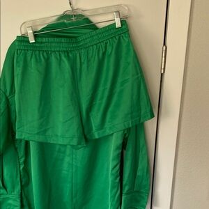 Zara SET Green 2-Ply Satin Shorts Shirt Jacket Bloggers Fave Mango NWOT M 6/8