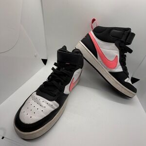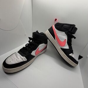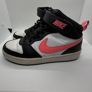 Nike Court Borough Mid 2 Youth Sneakers Black Pink White HooK Loop Sz 5.5Y