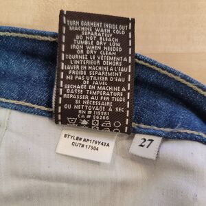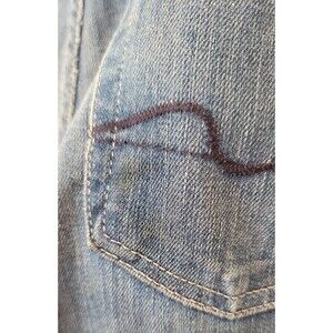 Pre-owned, good condition. Spots on the back pocket, see pic. Jeans look like they have been altered at the bottom, see pic. Front pockets have imperfections, see pic.
