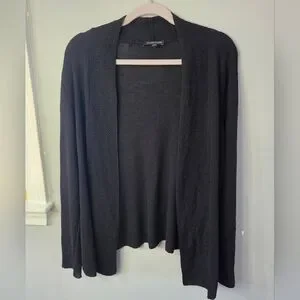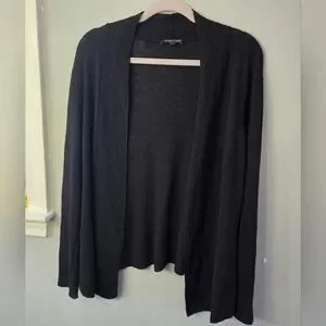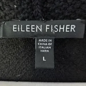 Eileen Fisher 100% Wool Black Open Front Cardigan Minimalist Classic *Flaw Large