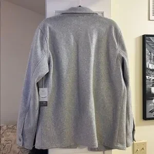 Stylish Vuori shirt jacket in light heather grey. Perfect for layering. Comfortable and versatile, from the weekend, to the office, to travel the perfect jacket to keep you stylish and warm.
