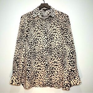 MASSIMO DUTTI Women's Tan Brown Animal Print Long Sleeve Blouse Size 4
