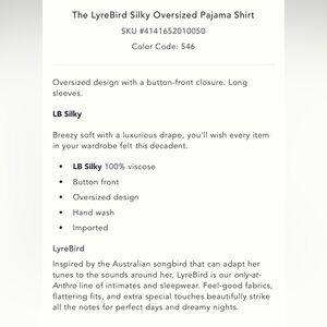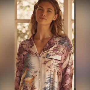 Anthropologie The LyreBird Silky Oversized Pajama Set - Size L