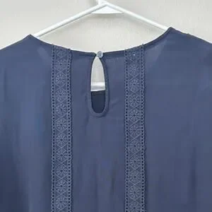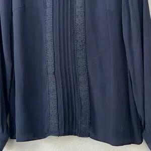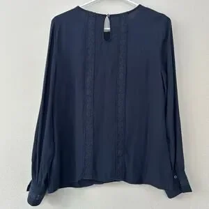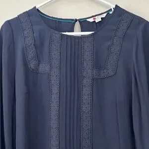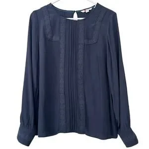 Boden Imi Jersey Trim Top Blouse Navy blue Lace trimPleated front Long sleeve Casual Smart casual Women's apparel Button cuffs boho bohemian