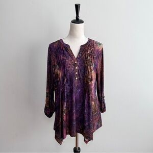 New Direction Top Tunic L Dark Floral Popover Pleated Asymmetrical Whimsigoth