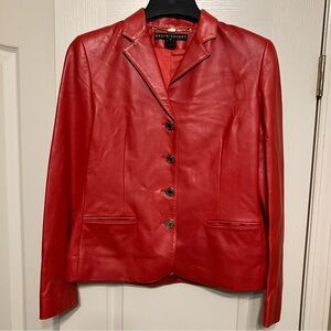 RALPH LAUREN Leather Jacket ITALY Black Label - Sz 8 RED Very Nice!