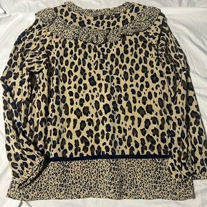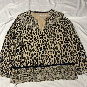 Vineyard Vines Borderline Ruffle Long Sleeve Blouse Women S Cheetah Lined