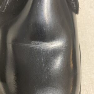 Slight scuff on right shoe as seen in picture. Inside has slight residue from previous price tag removal done at store. These are new and never worn with slight flaws. Leather upper. Oil resistant.