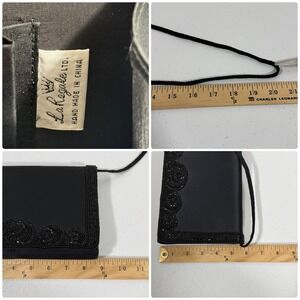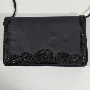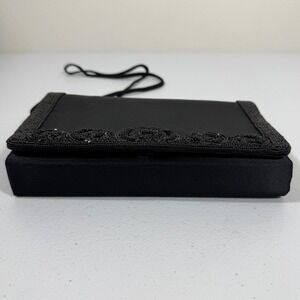La Royale Ltd VTG Beaded Clutch Purse Black Satiny Formal Wedding Evening Bag