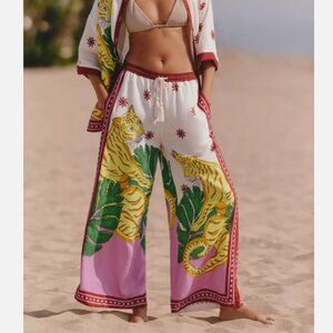 Anthropologie Celandine Linen Blend Wide Leg Pants Tiger Big Cats S NWT Small