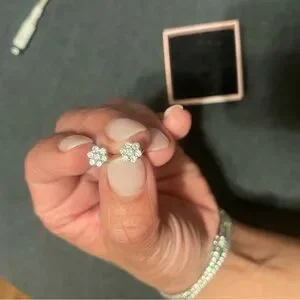 Chic MCM wallet in pink diamond earrings, leather bag, diamond ring, Tiffany ring