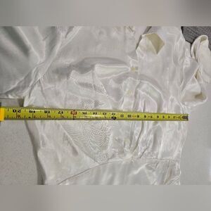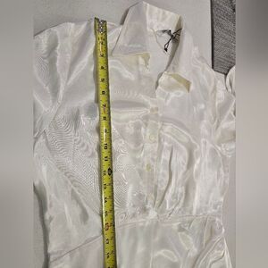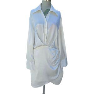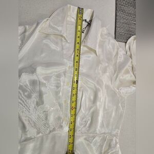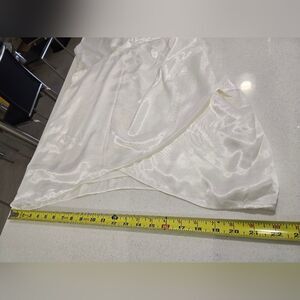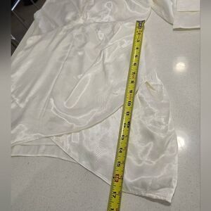 This elegant white satin dress drapes beautifully and flows with every movement. The long sleeves offer a touch of classic sophistication. The luxurious fabric catches the light, creating a radiant glow. It's a versatile piece, perfect for special occasions or a night out. Paired with simple heels and delicate jewelry, this dress is sure to make a statement.