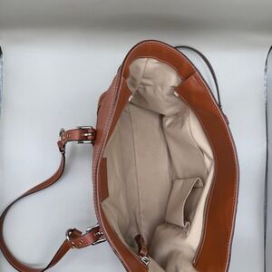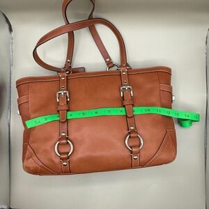 Keywords: Coach bag, leather tote, shoulder bag, work bag, classic handbag, brown purse, designer bag, everyday bag, structured tote, chic accessory, functional purse, timeless style