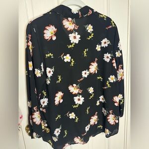 Van Heusen Black Floral Long Sleeve Top Size M