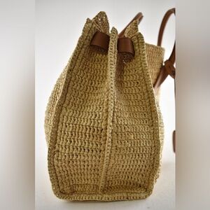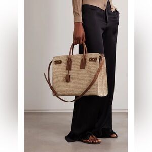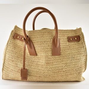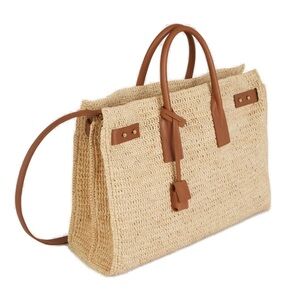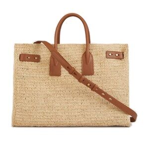 Saint Laurent Medium Sac De Jour Raffia Beige Brown Shoulder Top Handle Tote Bag