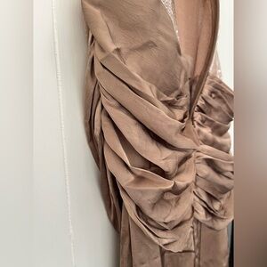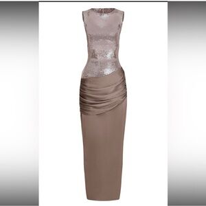 PLT Label Dark Taupe Sequin Sleeveless Drape Detail Maxi Dress Size 6 NEW tags