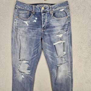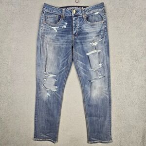 Stylish straight leg jeans. Distressed detailing. Classic five-pocket design. Comfortable fit.