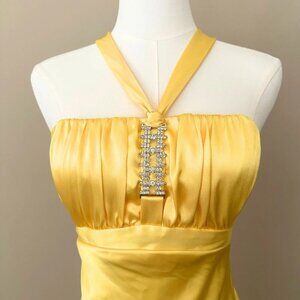 Gunne Sax Yellow Satin Evening Gown 9 Jessica McClintock Y2K Long Formal Dress
