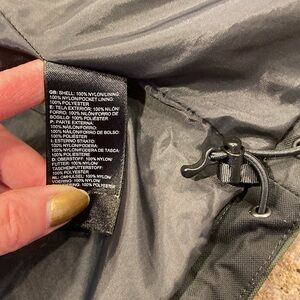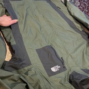 The North Face Ski /Winter Shell Jacket (Shell Only). This is For the Shell Jacket Only. HyVent. PLEASE NOTE - THIS IS MISSING THE DETACHABLE HOOD AND THERE IS NO LINER. THIS LISTING IS FOR THE SHELL ONLY. Men’s Size Large. I believe this is a Green Color and Gray but I have a hard time with Colors so I could be incorrect. I purchased for my husband but he doesn’t really wear it anymore so he decided to sell it. This has some age- I believe it was from Fall 2012. This is in used condition showing all over wear with minor imperfections since it is used and it has age. It is very wrinkled from Storage. Measurements are approximate and colors may be off because of lighting.