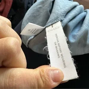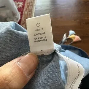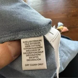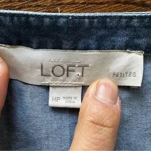 LOFT Blue Denim Chambray Mini Summer Shift Dress with ruffle sleeves & tassels