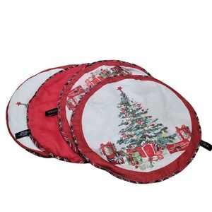 Set Of 4 Max Studio Christmas Tree Placemats 15" Round Home Decor Holidays