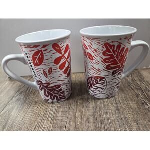 Starbucks Fall Leaves Autumn Leaf 11oz Coffee Mug Cup Red Burgundy White Lot of2