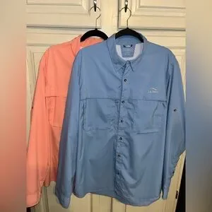 2 L.L.Bean men’s shirts in blue and salmon. Very lightweight great for sun protection