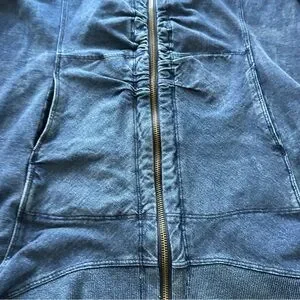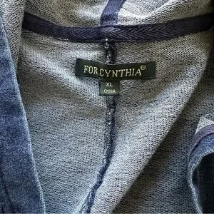 For Cynthia Blue Hooded Cotton Terry zip up sweater boho Tunic Jacket