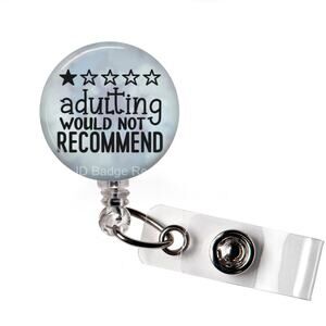 Adulting Would Not Recommend Badge Reel β Funny Sarcastic Retractable ID Holder