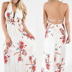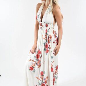 ILLA ILLA Magic Moments Maxi Cream Floral Backless Halter Maxi Dress Size S