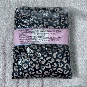 New elegant velour jogger set by Kate Spade. Features a striking black and brown leopard pattern. Includes eye mask. Perfect gift for her.