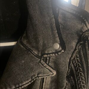 Elevate your style with this chic black distressed jacket. Perfect for adding an edgy touch to any outfit.