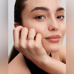 Brand New in Box Pandora’s Pink Elevated Heart Promise Ring in Rose Gold. Add a sophisticated touch to your look with the Sparkling Elevated Heart Ring. The ring draws inspiration from the classic Pandora Timeless collection. Hand-finished in 14k rose gold unique metal blend, this piece features a pink heart-shaped central, elevated stone. Clear cubic zirconia create the halo and decorate half of the ring band, with the Pandora logo inside the shank. Stack this ring with hand-finished styles in sterling silver for a statement mixed metal look.