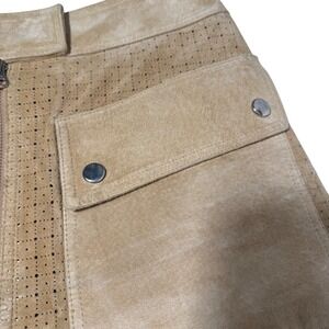 Margaret Godfrey Genuine Suede Mini Skirt Size 6 Tan Utility Pockets Zip Front