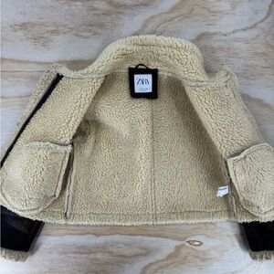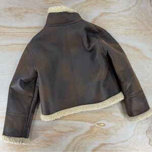 ZARA Kids Brown faux-leather aviator jacket + faux-shearling lining Size 11-12