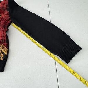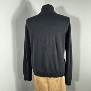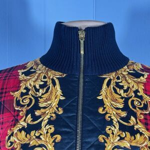 Ralph Lauren Sz L Black Knit Gold Baroque Cotton Quilted Front Zip Cardigan