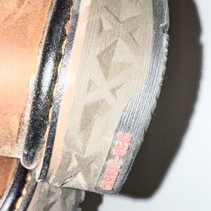 Sturdy boots with red embroidery. Side zipper for convenience. Durable and stylish. They’ve got some wear because boys will be boys ;)
