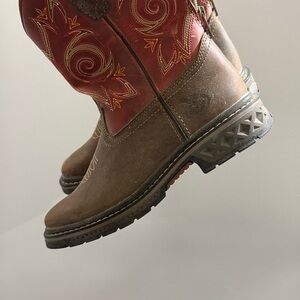 Georgia Boot Brown and Red Embroidered Boots