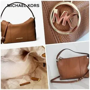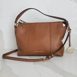 NWOT MICHAEL KORS BROOKE Satchel Handbag Tan Pebbled Leather Medium Shoulder Bag